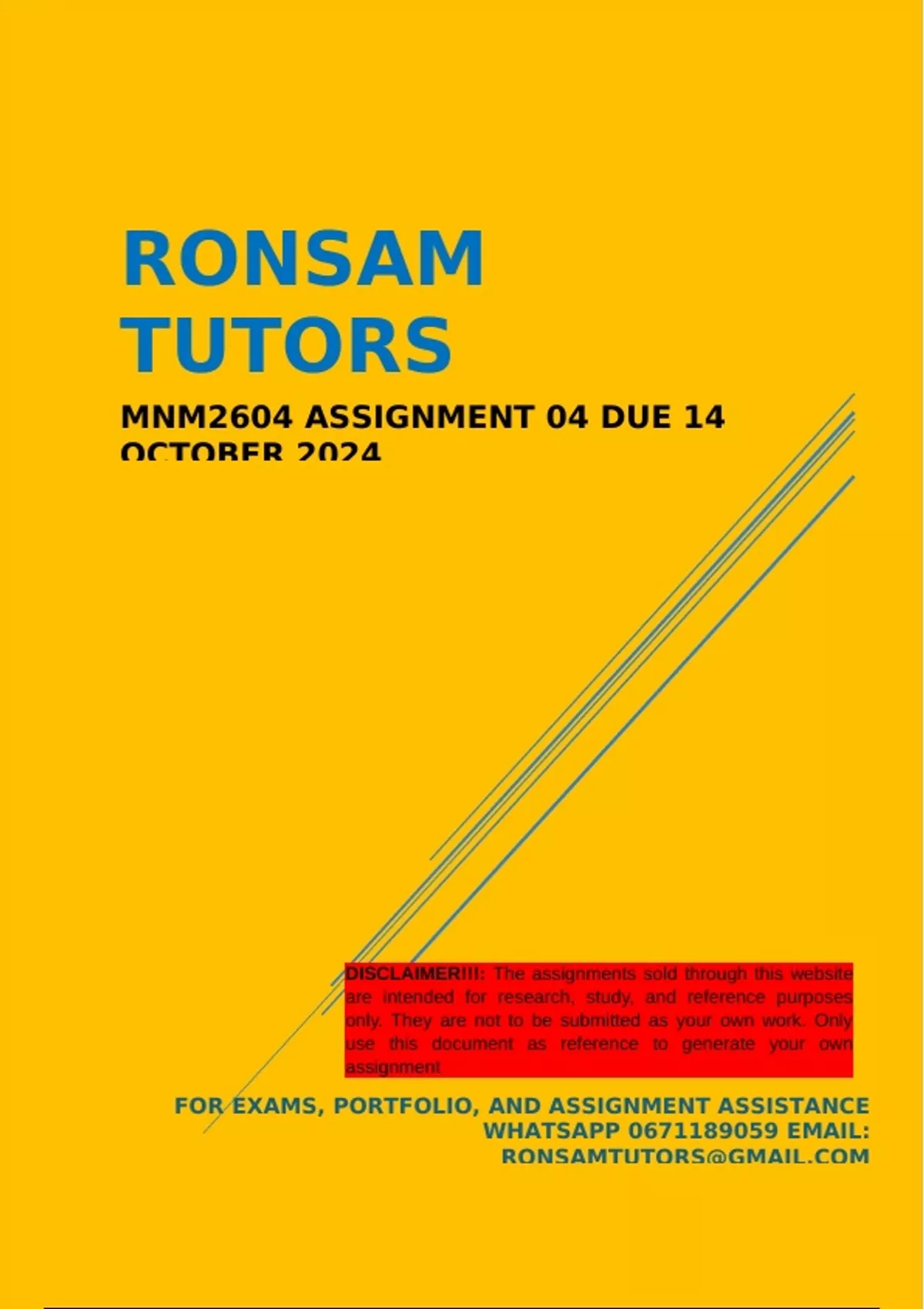 DISCLAIMER!!!: The assignments sold through this website
