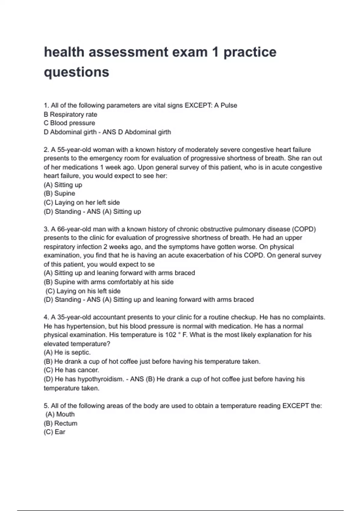 health assessment exam 1 practice
