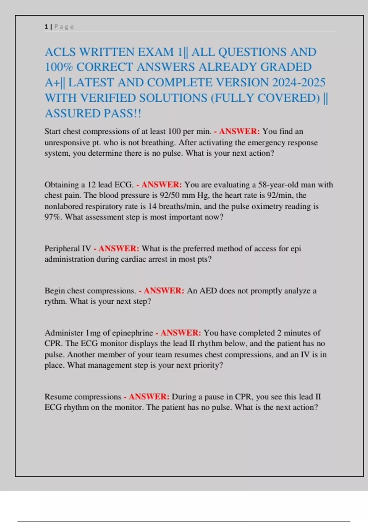 ACLS WRITTEN EXAM 1|| ALL QUESTIONS AND