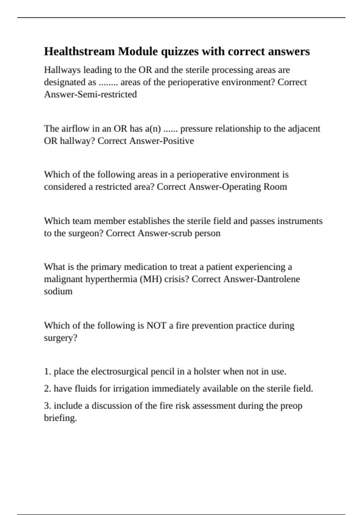Healthstream Module quizzes with correct answers.