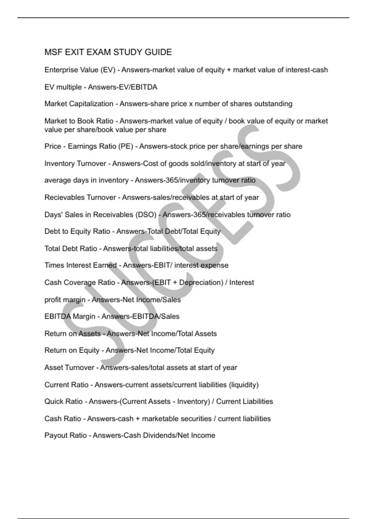 MSF EXIT EXAM STUDY GUIDE