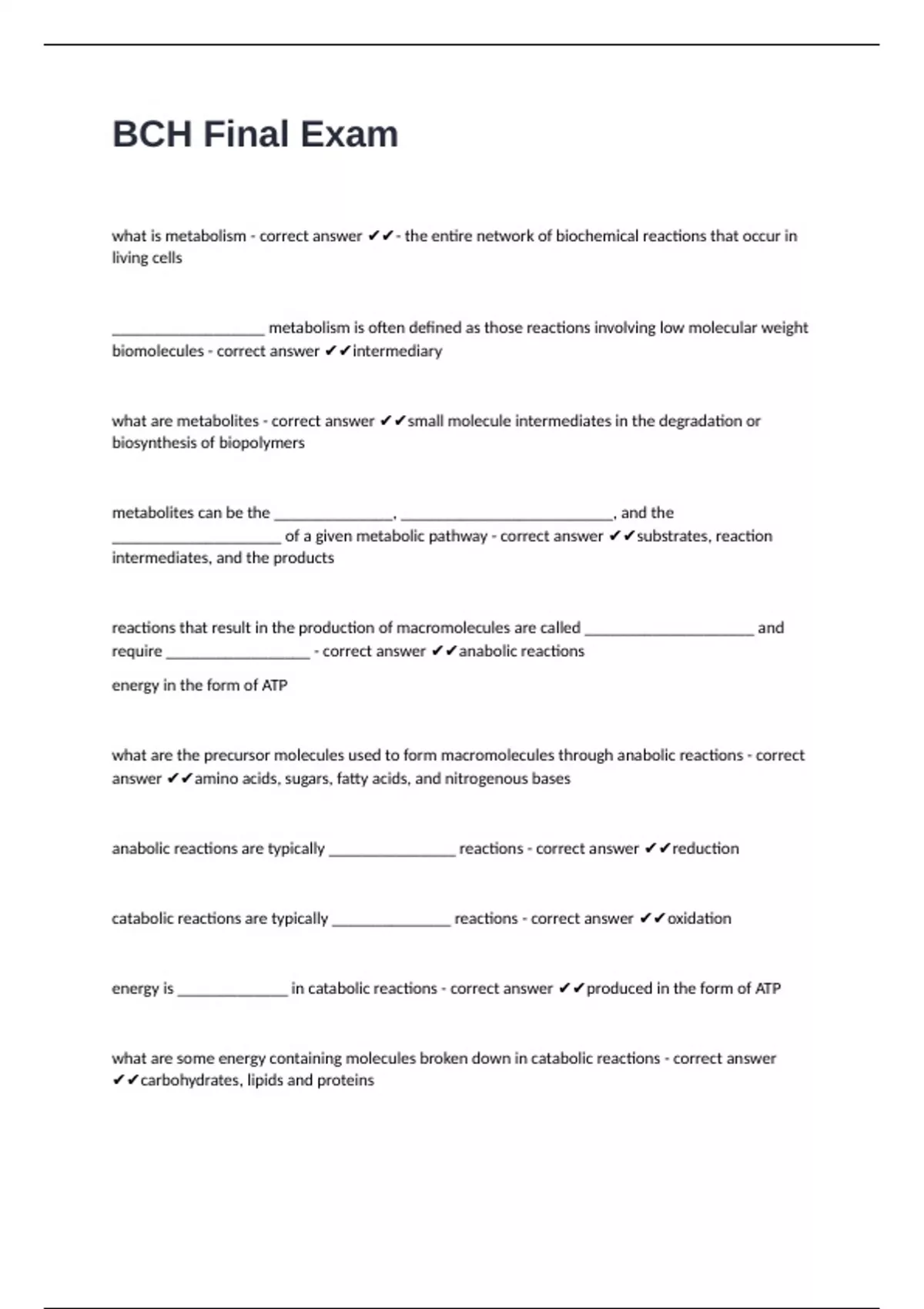 what is metabolism - correct answer ✔✔- the entire network of biochemical reactions that occur in