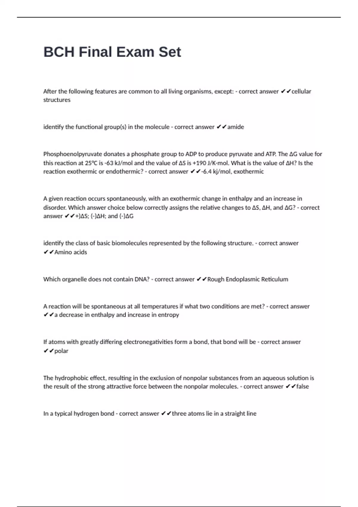 answer ✔✔+)ΔS; (-)ΔH; and (-)ΔG