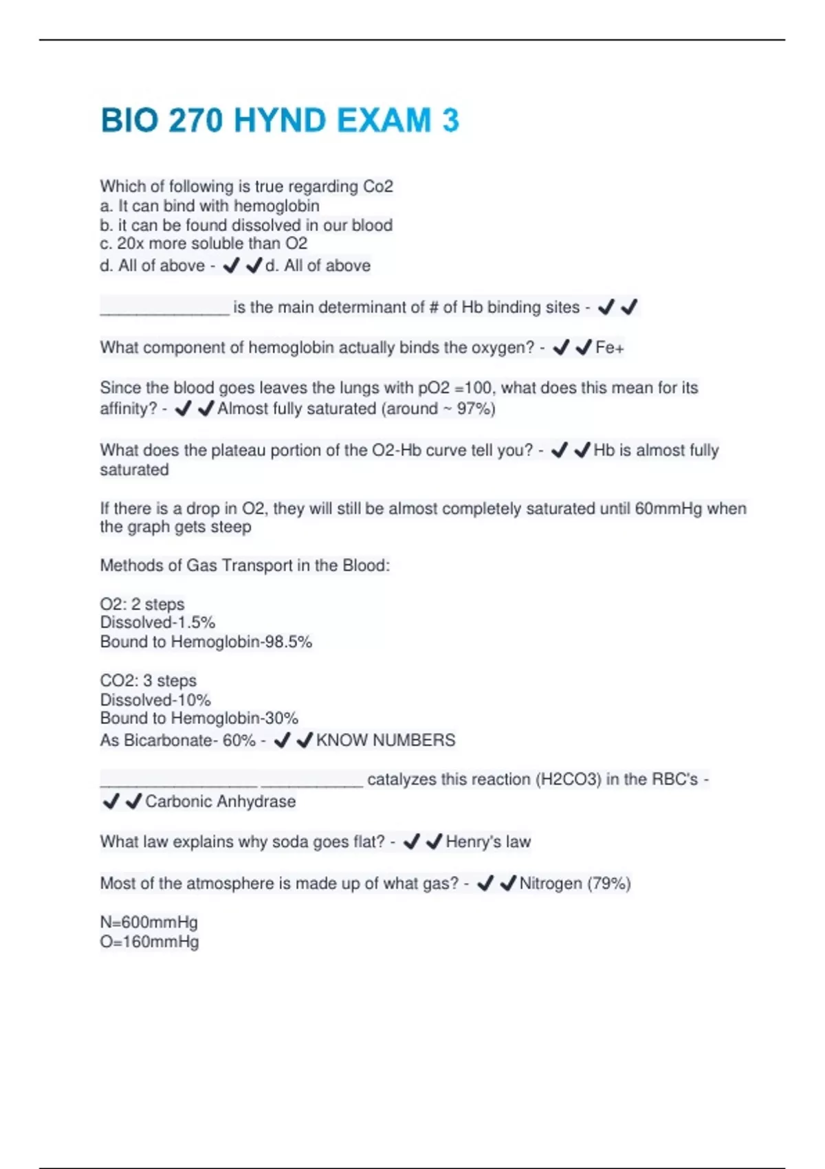 What component of hemoglobin actually binds the oxygen? - ✔️✔️Fe+