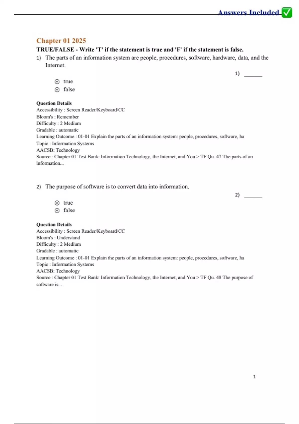 Learning Outcome : 01-01 Explain the parts of an information system: people, procedures, software, ha