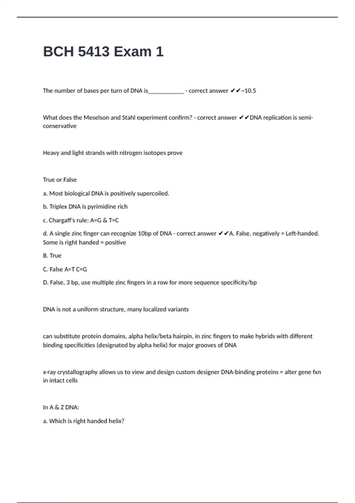 d. A single zinc finger can recognize 10bp of DNA - correct answer ✔✔A. False, negatively = Left-handed.