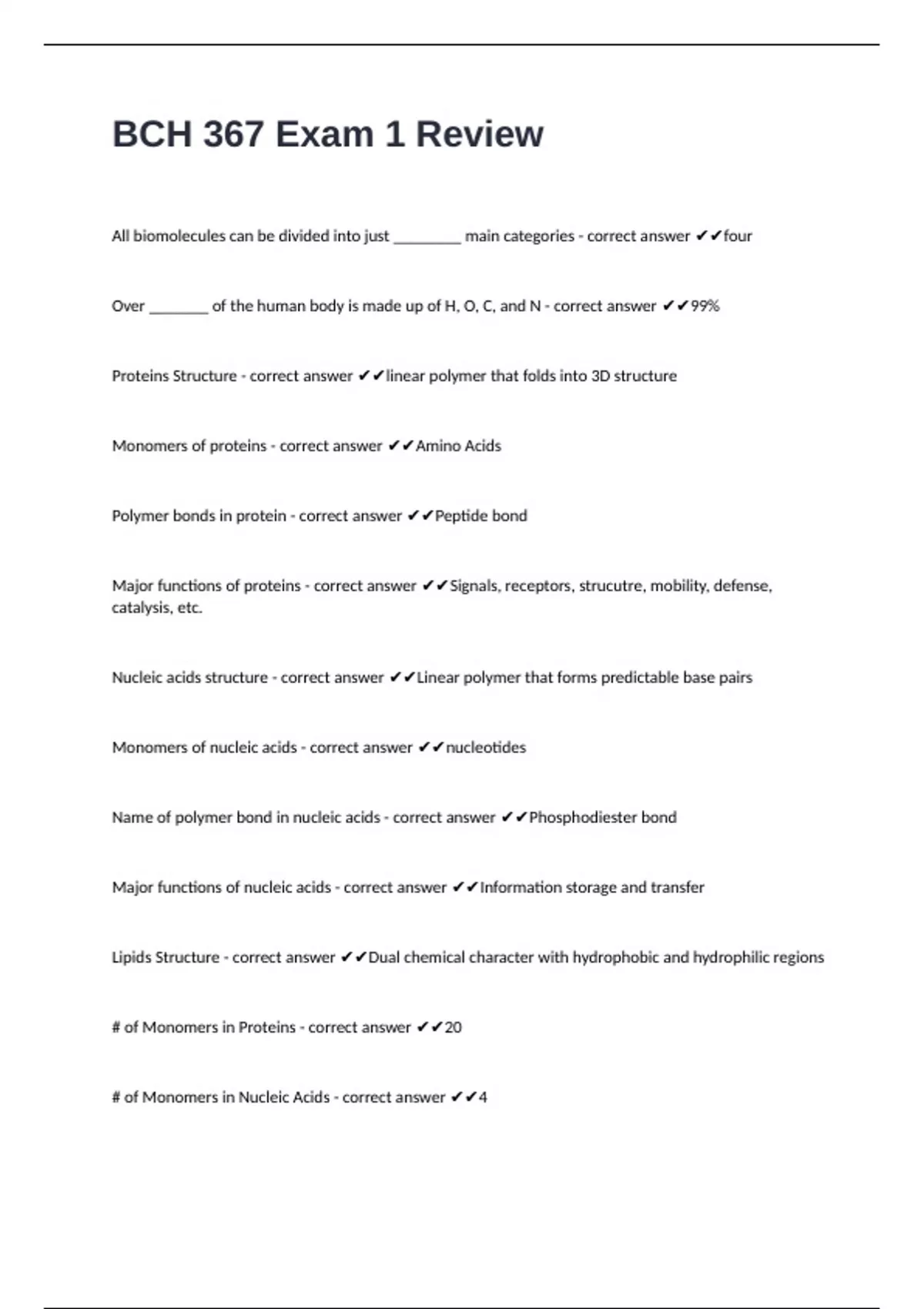 Major functions of nucleic acids - correct answer ✔✔Information storage and transfer