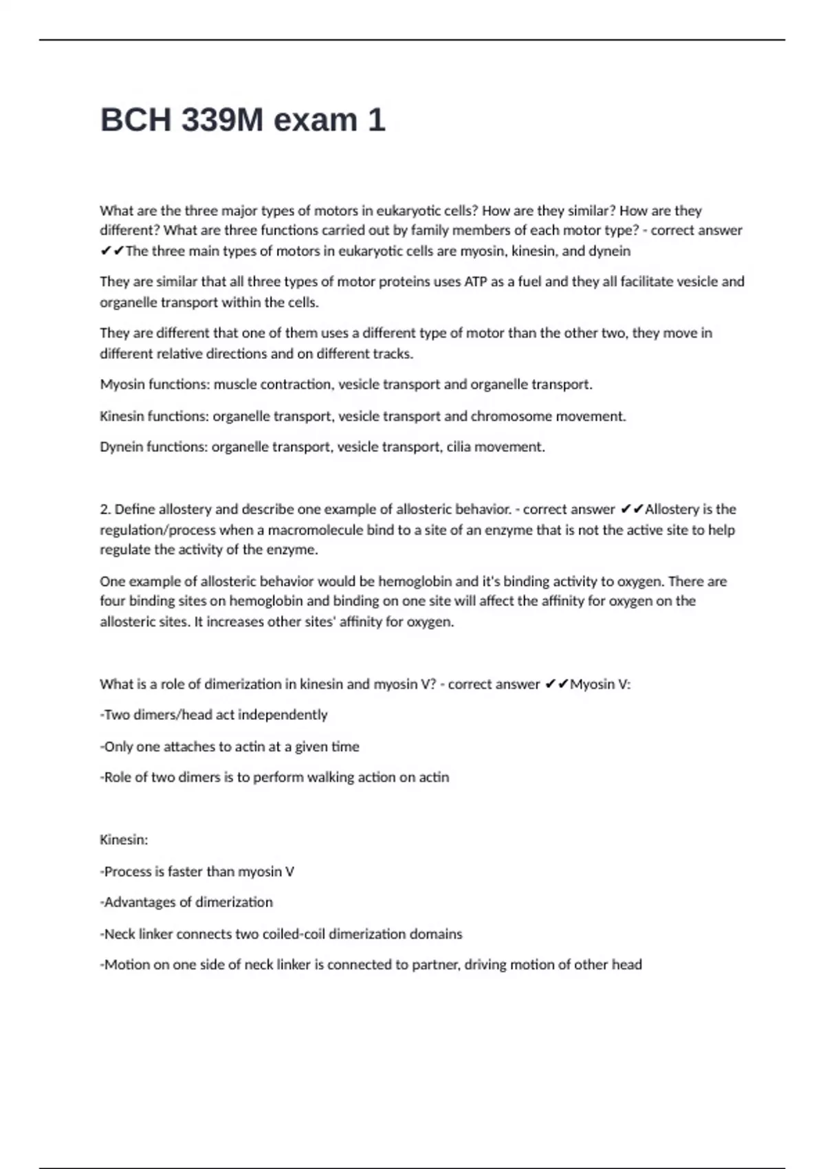 BCH 339M exam 1 questions well answered already passed