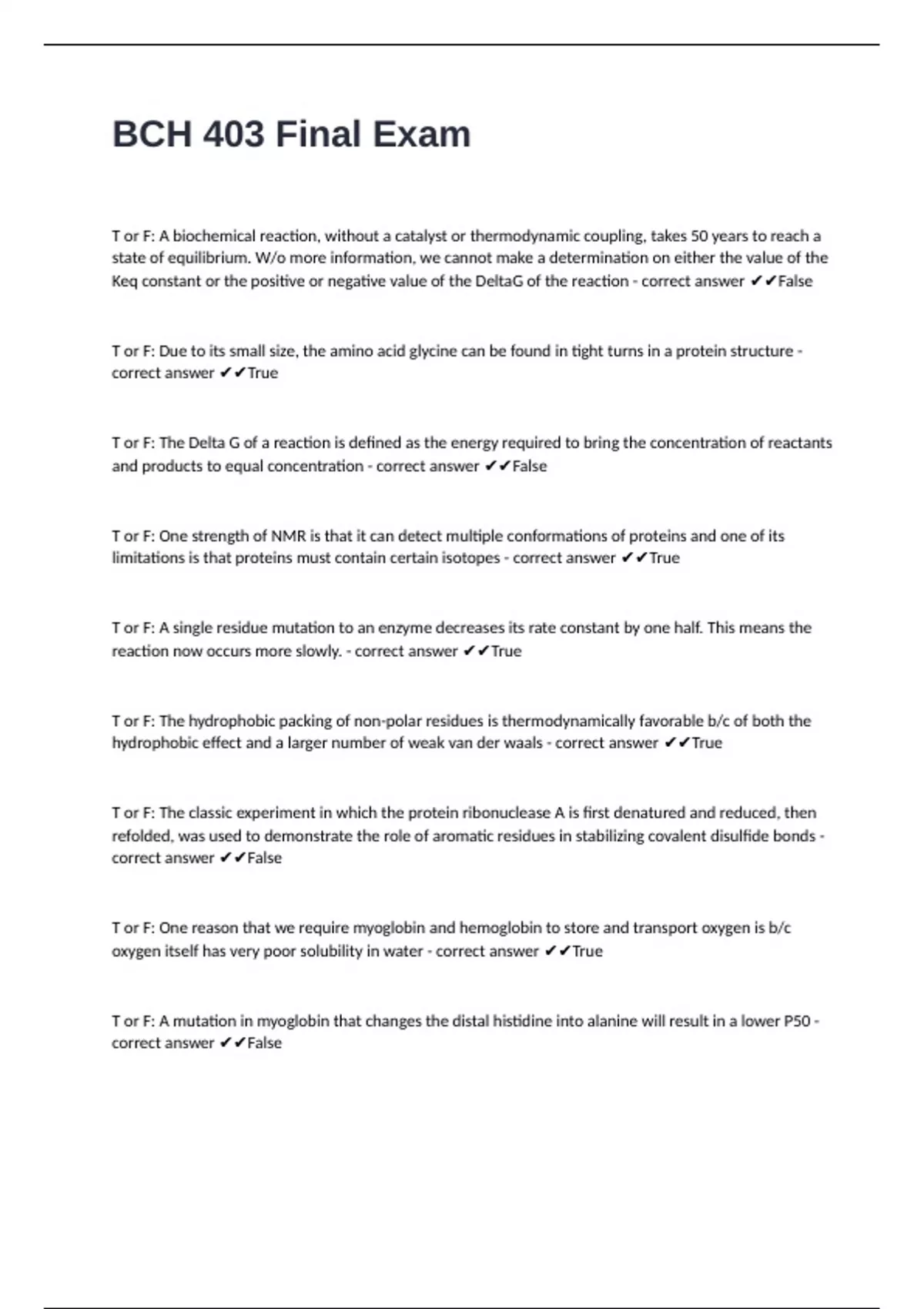 T or F: The classic experiment in which the protein ribonuclease A is first denatured and reduced, then