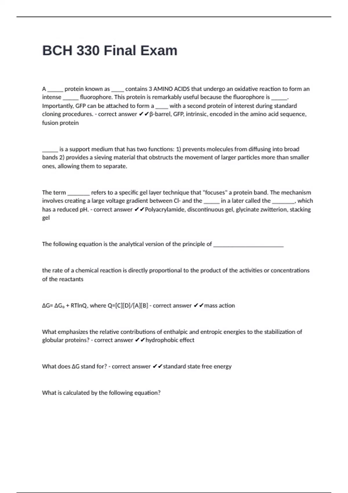 What does ∆G stand for? - correct answer ✔✔standard state free energy