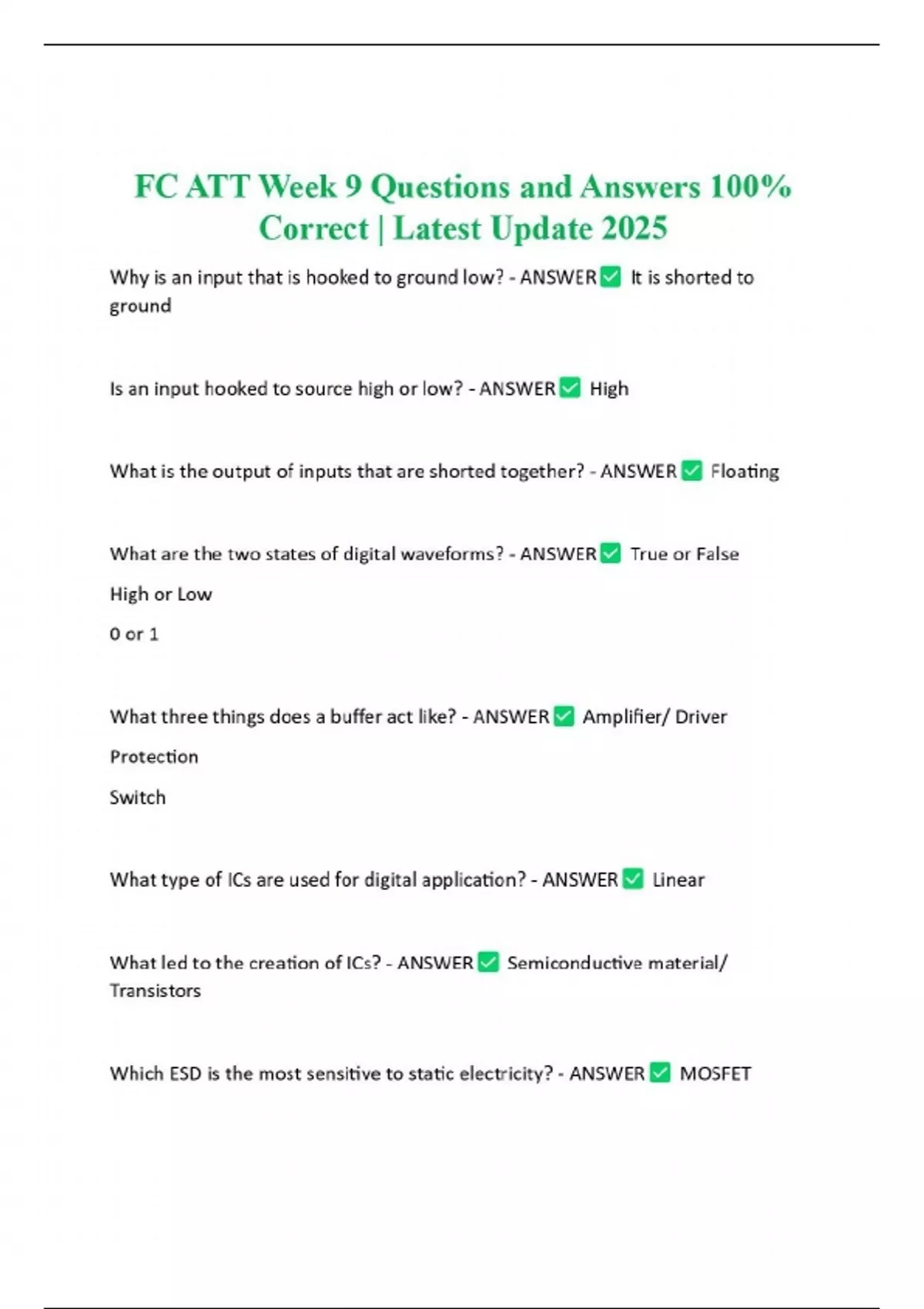 FC ATT Week 9 Questions and Answers 100% Correct | Latest Update 2025
