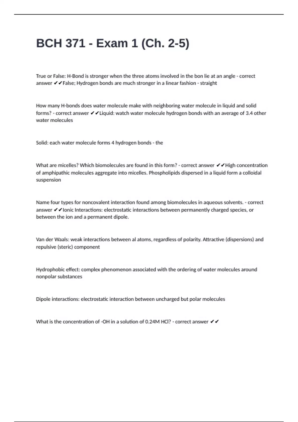 forms? - correct answer ✔✔Liquid: watch water molecule hydrogen bonds with an average of 3.4 other