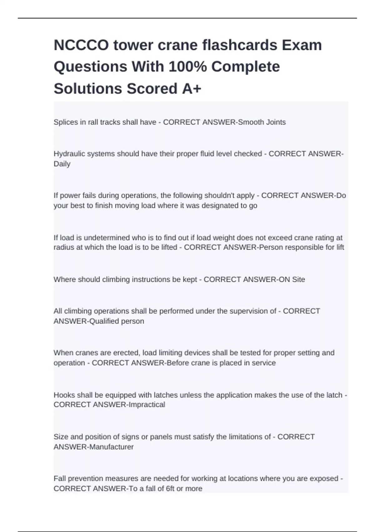NCCCO tower crane flashcards Exam Questions With 100% Complete Solutions Scored A+