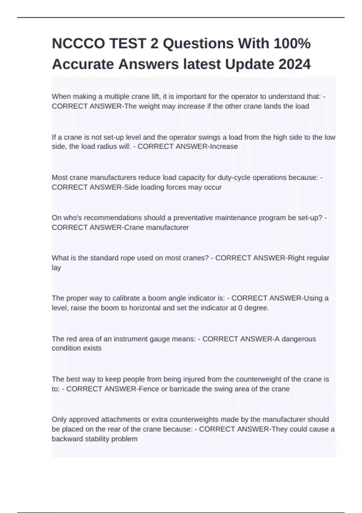 CORRECT ANSWER-The weight may increase if the other crane lands the load