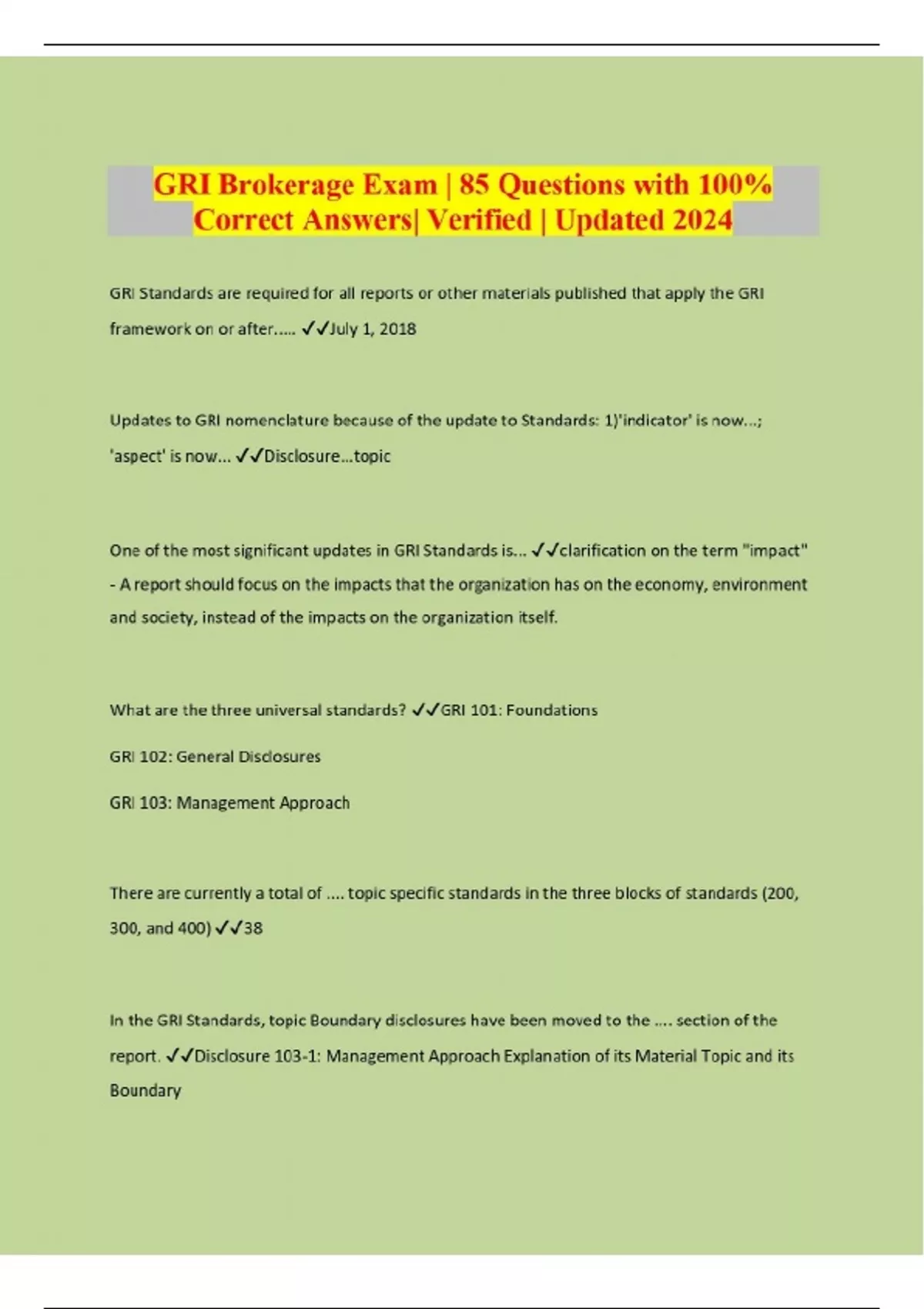GRI Brokerage Exam | 85 Questions with 100% Correct Answers| Verified | Updated 2024