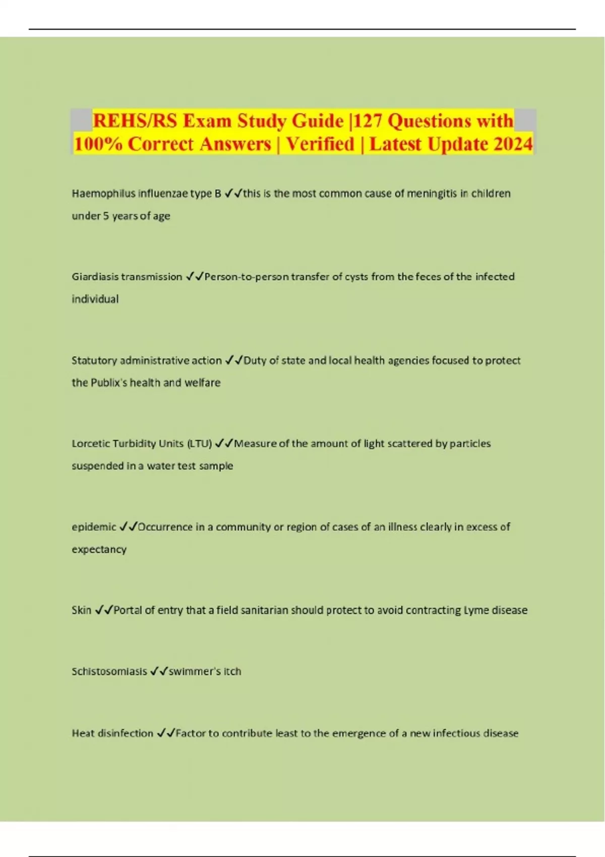 REHS/RS Exam Study Guide |127 Questions with 100% Correct Answers | Verified | Latest Update 2024