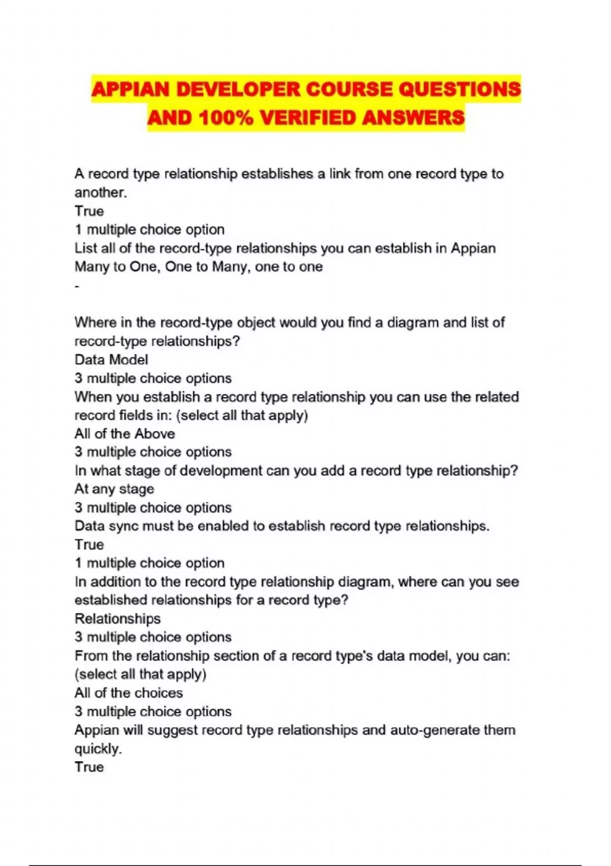 APPIAN DEVELOPER COURSE QUESTIONS AND 100% VERIFIED ANSWERS