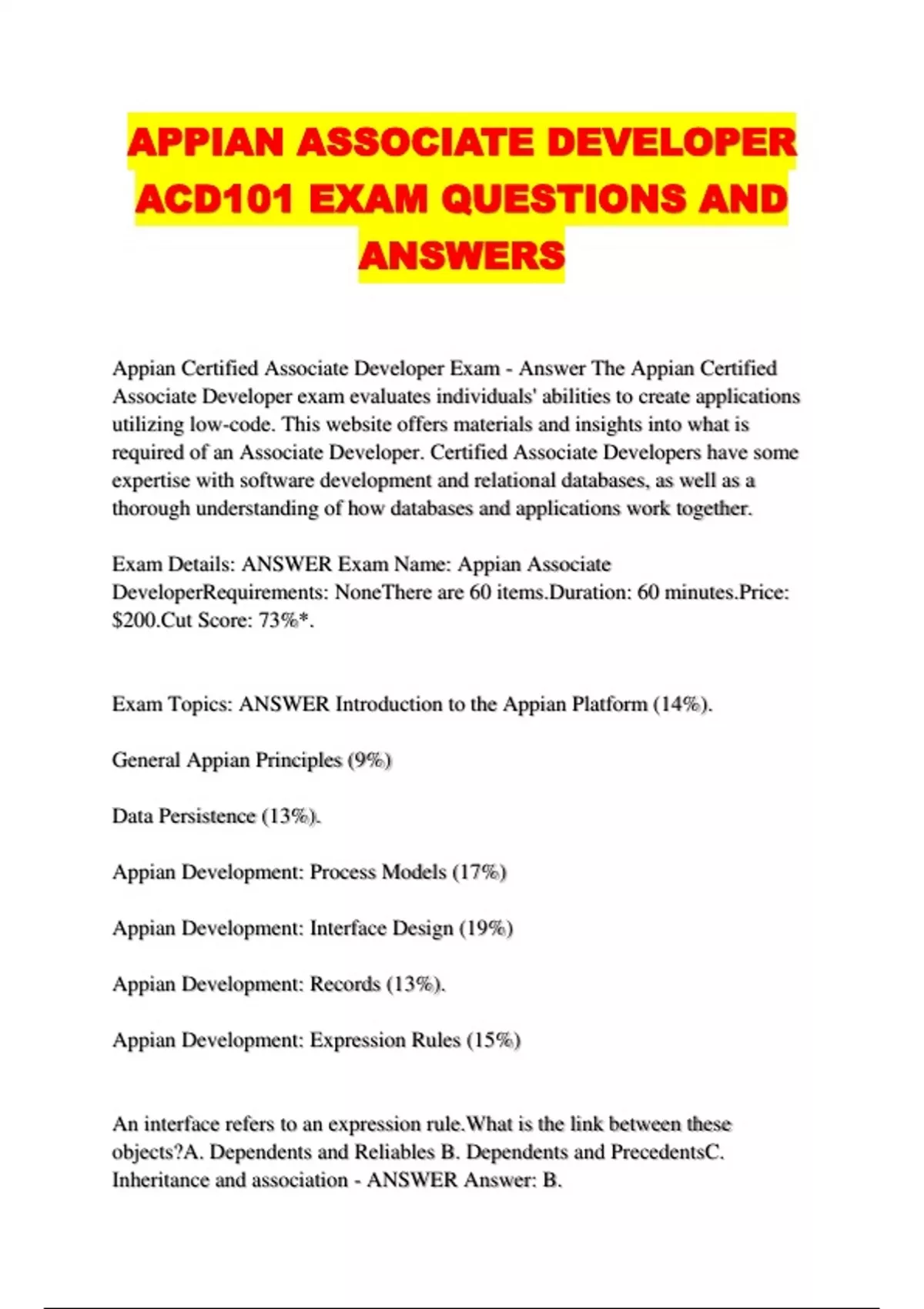 Exam Details: ANSWER Exam Name: Appian Associate