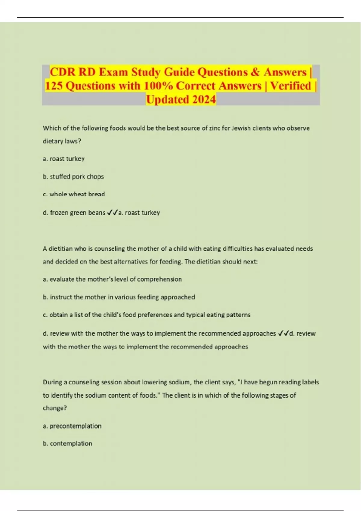 CDR RD Exam Study Guide Questions & Answers | 125 Questions with 100% Correct Answers | Verified | Updated 2024