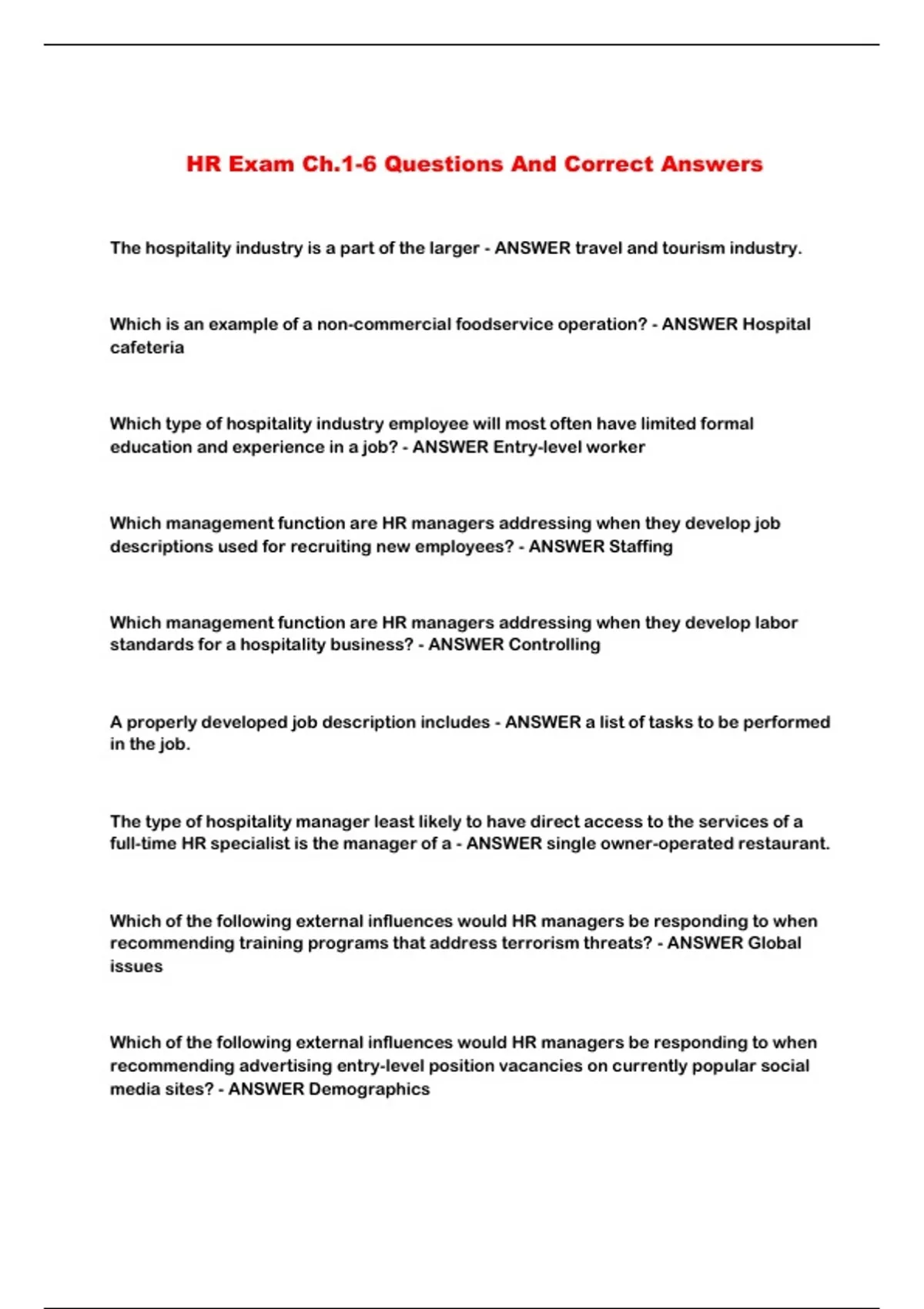 HR Exam Ch.1-6 Questions And Correct Answers