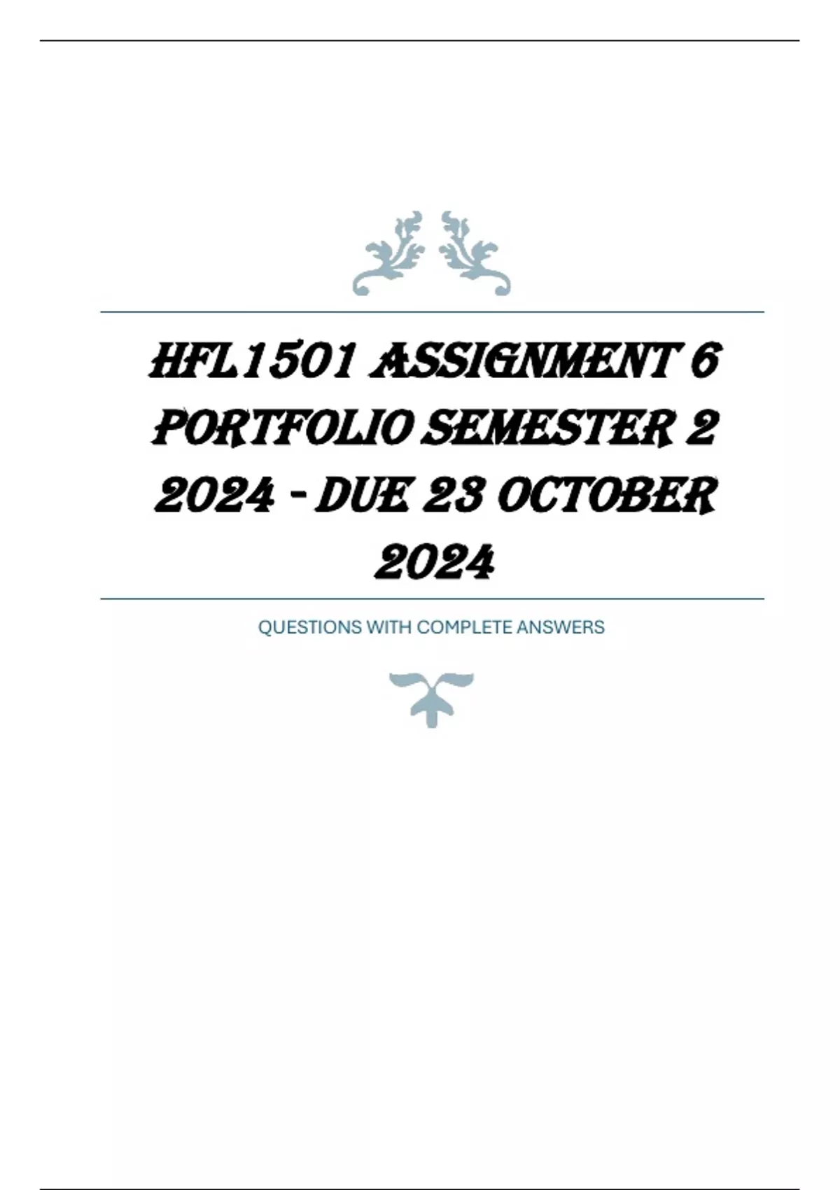 , HFL1501 Assignment 6 PORTFOLIO Semester 2 2024 - DUE 23
