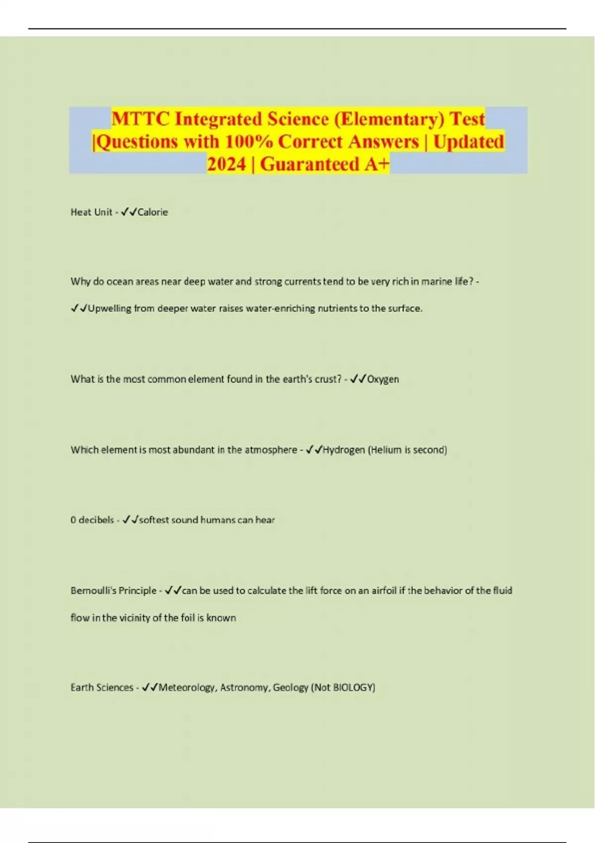 MTTC Integrated Science (Elementary) Test |Questions with 100% Correct Answers | Updated 2024 | Guaranteed A+