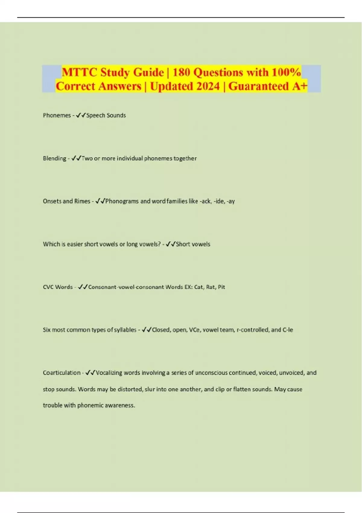 MTTC Study Guide | 180 Questions with 100% Correct Answers | Updated 2024 | Guaranteed A+