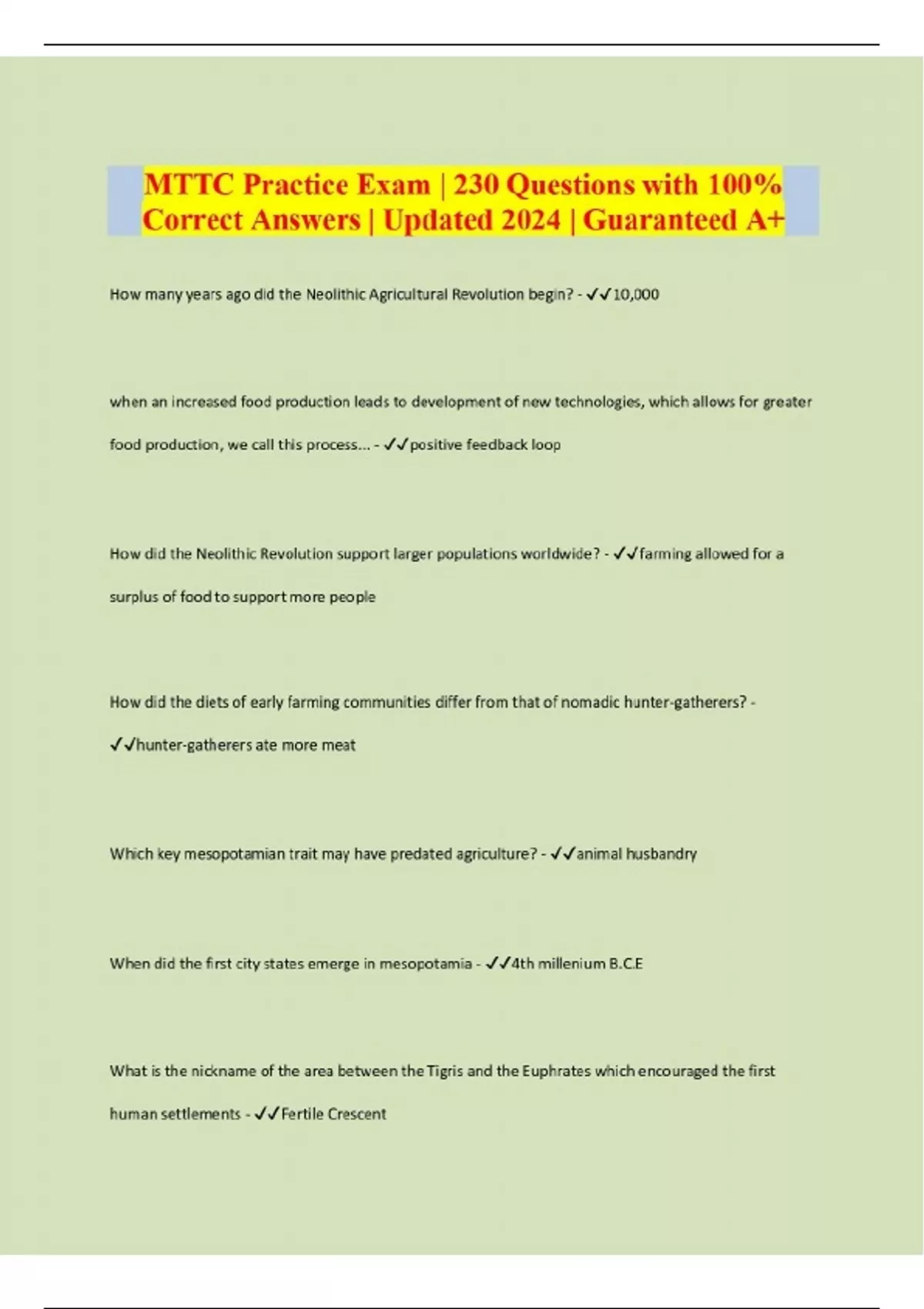 MTTC Practice Exam | 230 Questions with 100% Correct Answers | Updated 2024 | Guaranteed A+