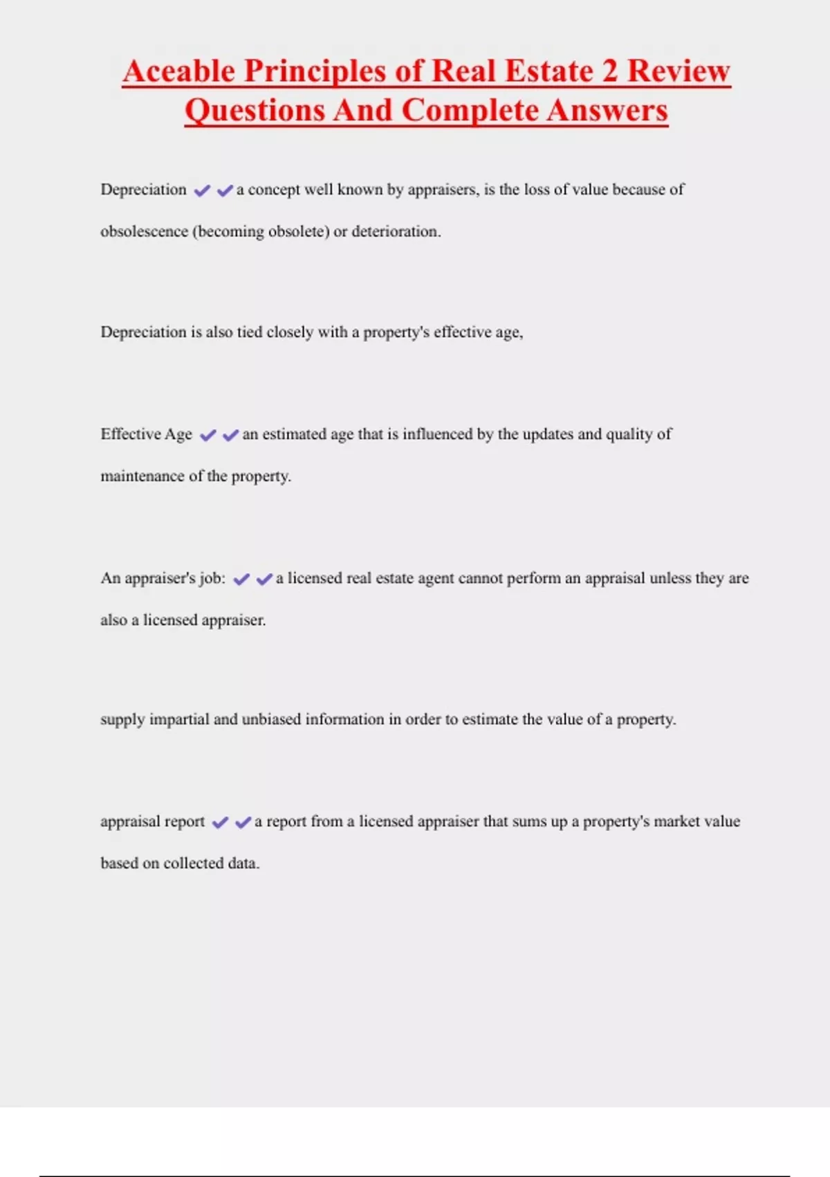Aceable Principles of Real Estate 2 Review Questions And Complete Answers