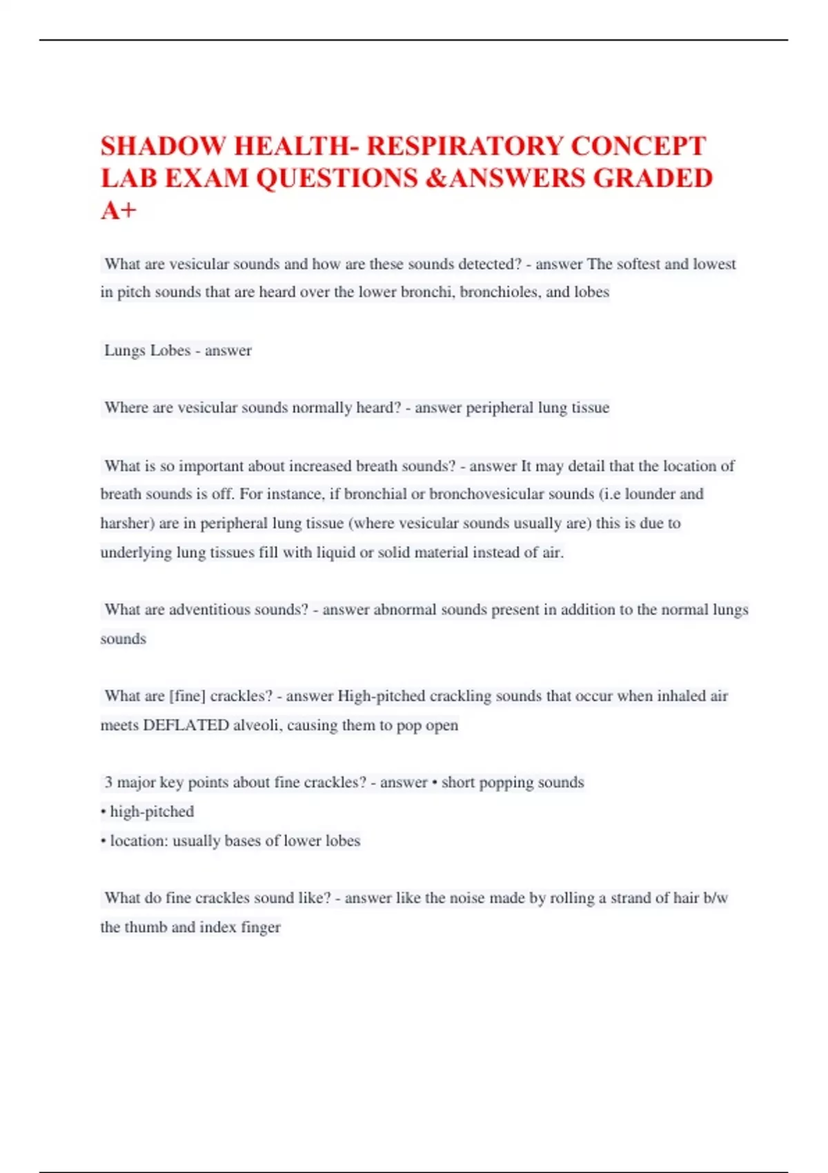 What are [fine] crackles? - answer High-pitched crackling sounds that occur when inhaled air