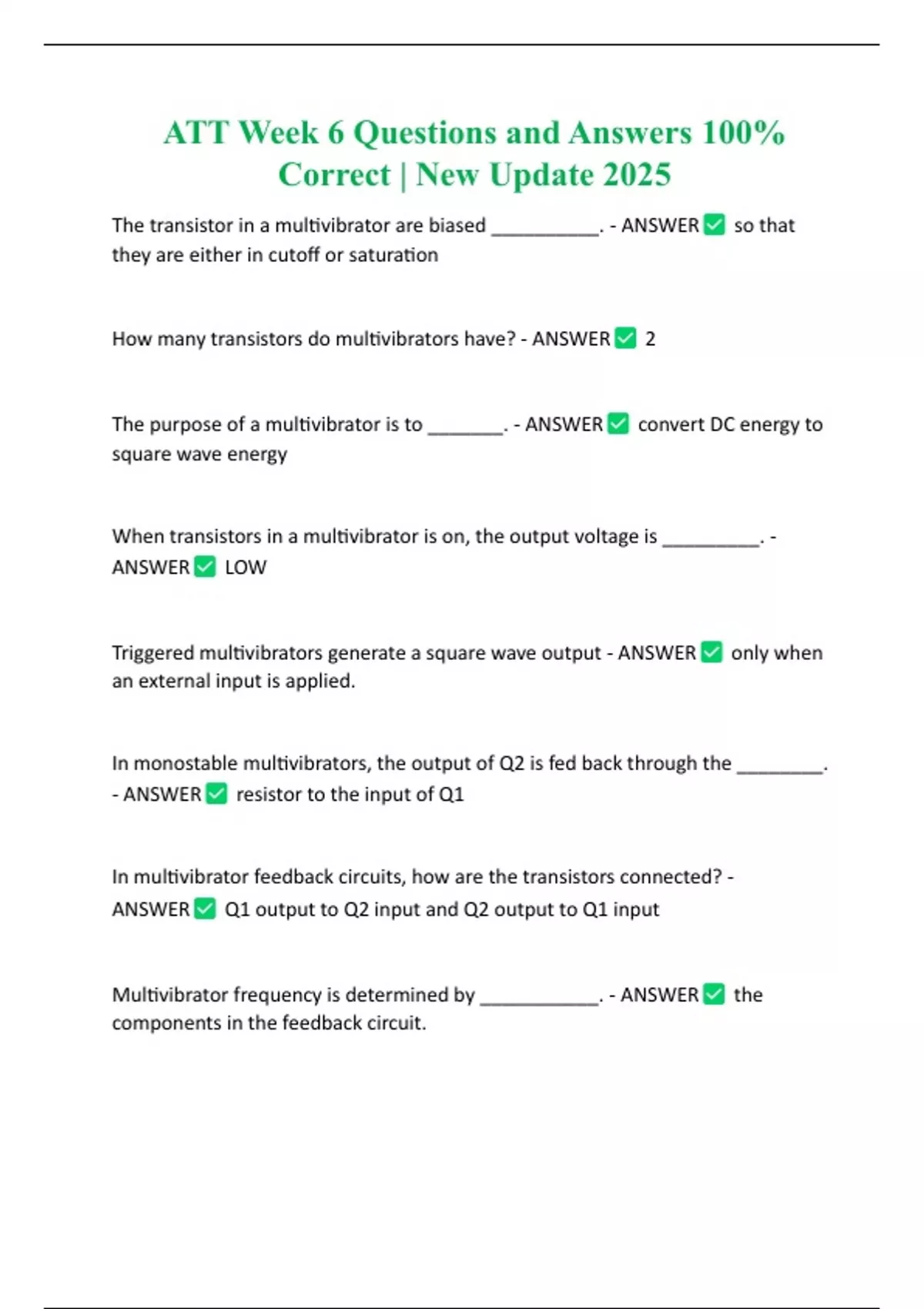 The purpose of a multivibrator is to _______. - ANSWER convert DC energy to