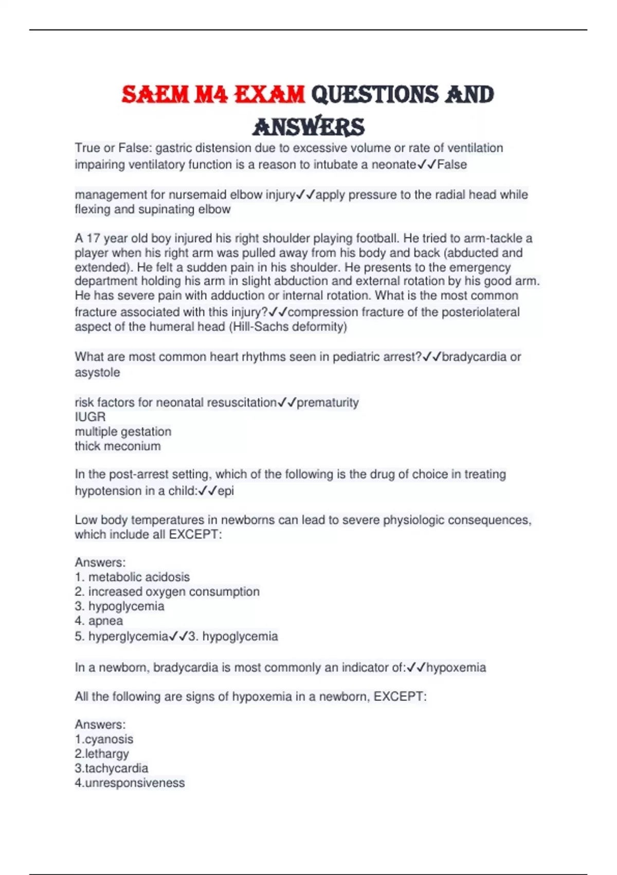 SAEM exams questions and answers PACKAGE