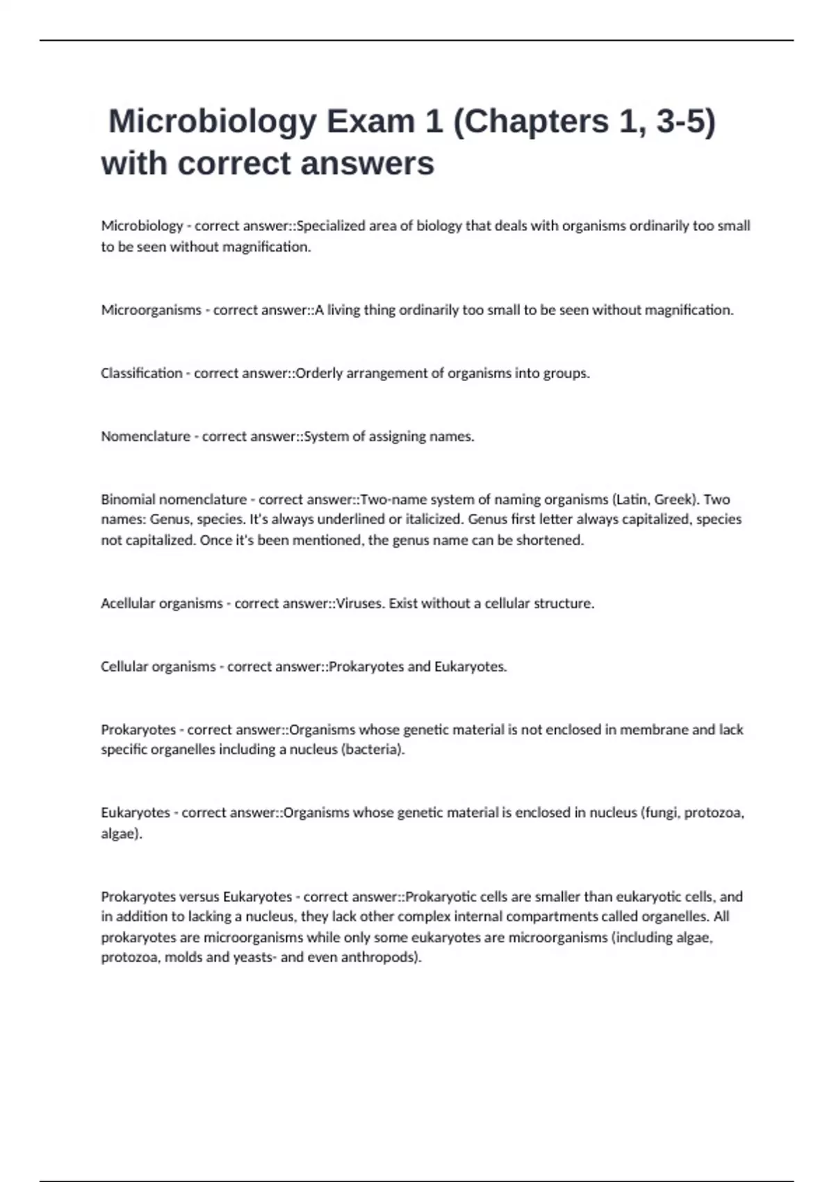Microbiology - correct answer::Specialized area of biology that deals with organisms ordinarily too small