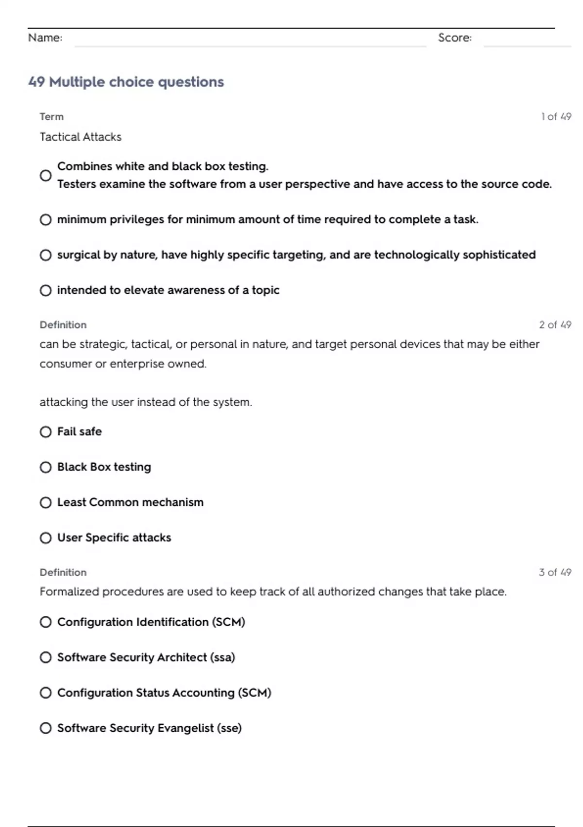 WGU-C706 Secure Software Design (Pre-Assessment) Questions With 100% Correct Answers!!