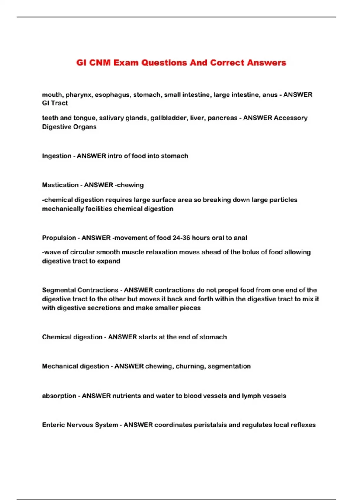 GI CNM Exam Questions And Correct Answers