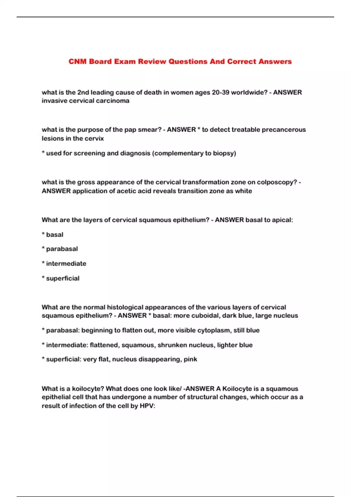 CNM Board Exam Review Questions And Correct Answers