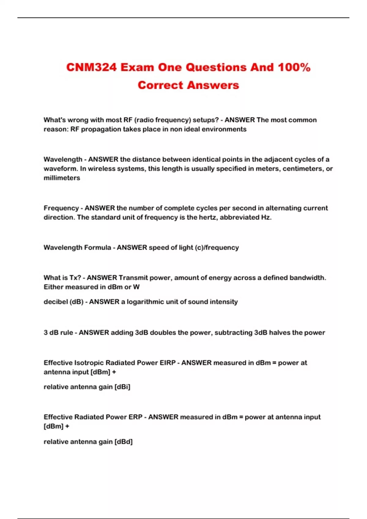 CNM324 Exam One Questions And 100%