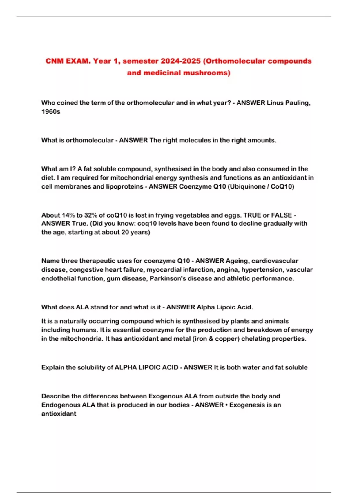 CNM EXAM. Year 1, semester 2024-2025 (Orthomolecular compounds