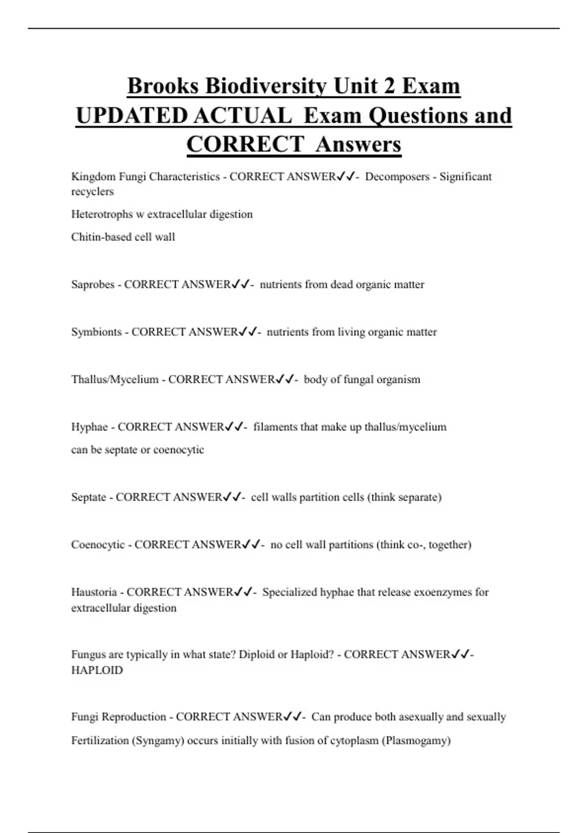 Fungus are typically in what state? Diploid or Haploid? - CORRECT ANSWER✔✔-
