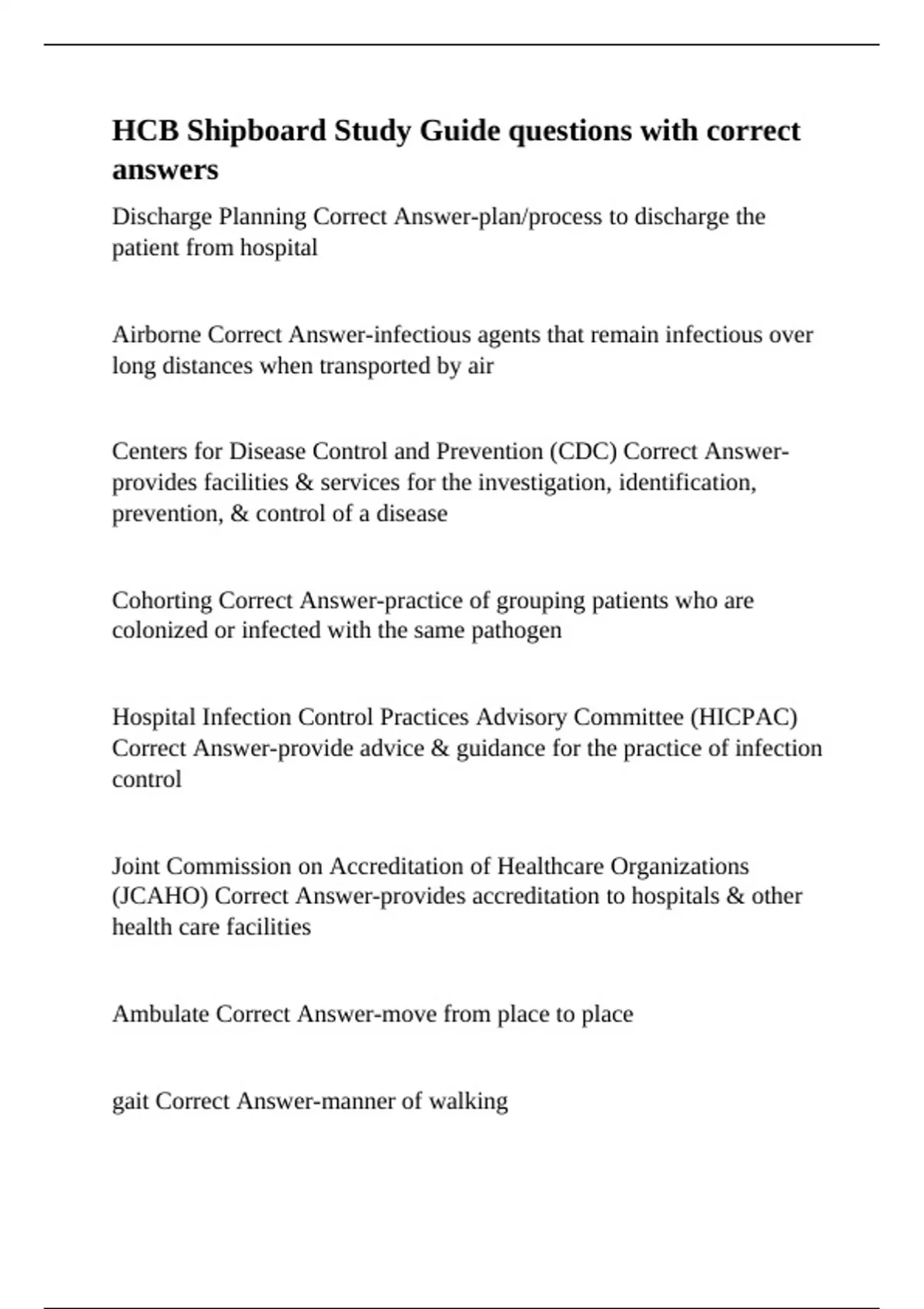 Centers for Disease Control and Prevention (CDC) Correct Answer-