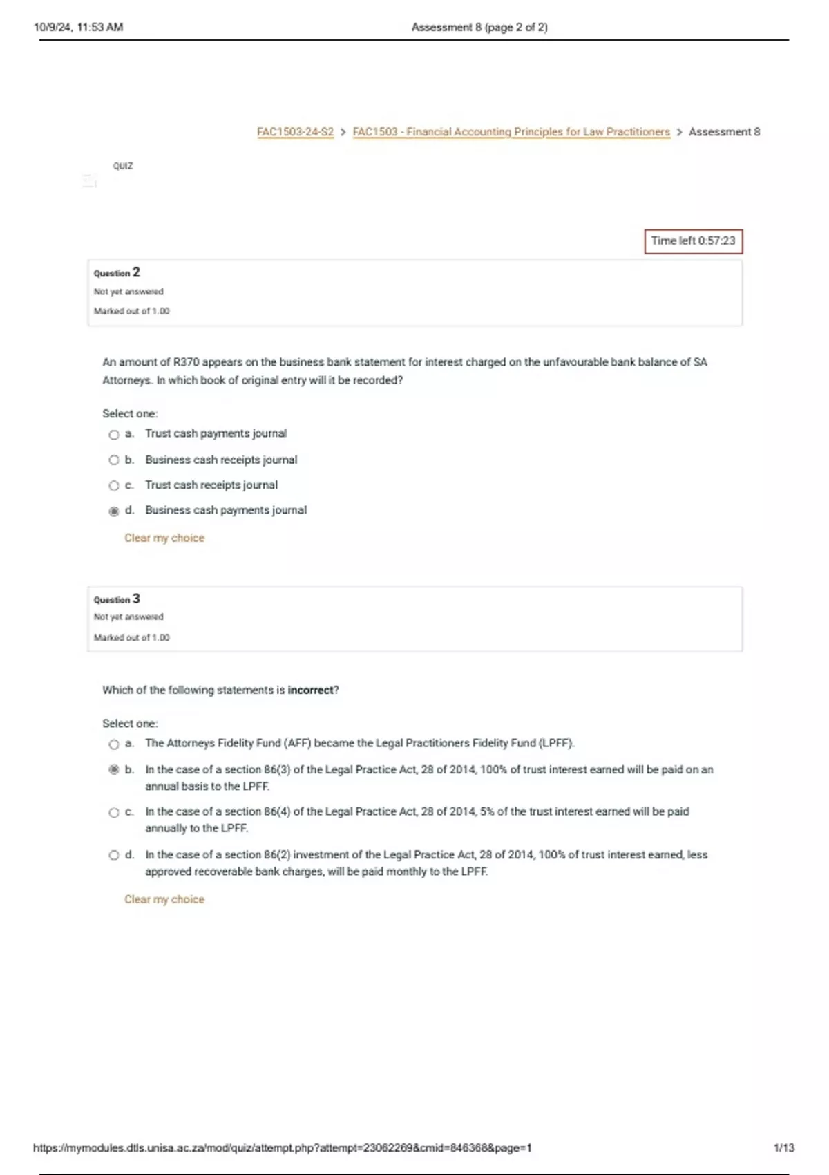 FAC1503-24-S2  FAC1503 - Financial Accounting Principles for Law Practitioners  Assessment 8