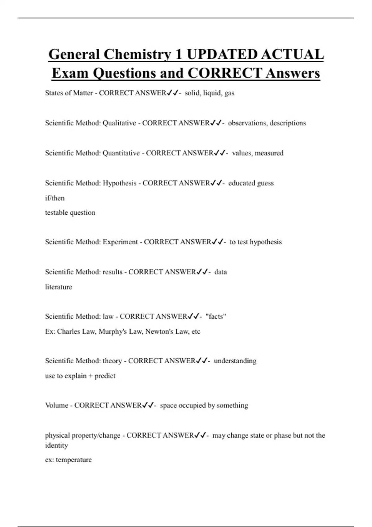 Scientific Method: Hypothesis - CORRECT ANSWER✔✔- educated guess
