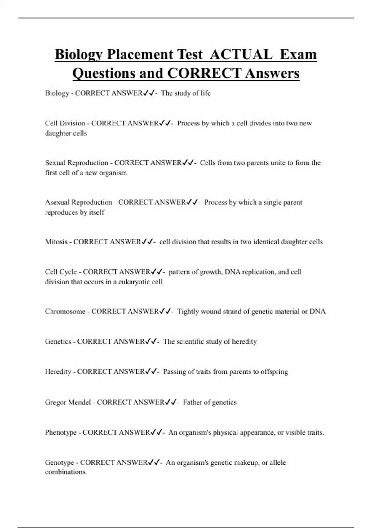 Genotype - CORRECT ANSWER✔✔- An organism's genetic makeup, or allele