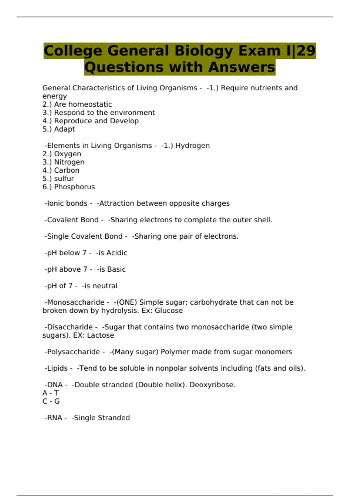 College General Biology Exam I|29