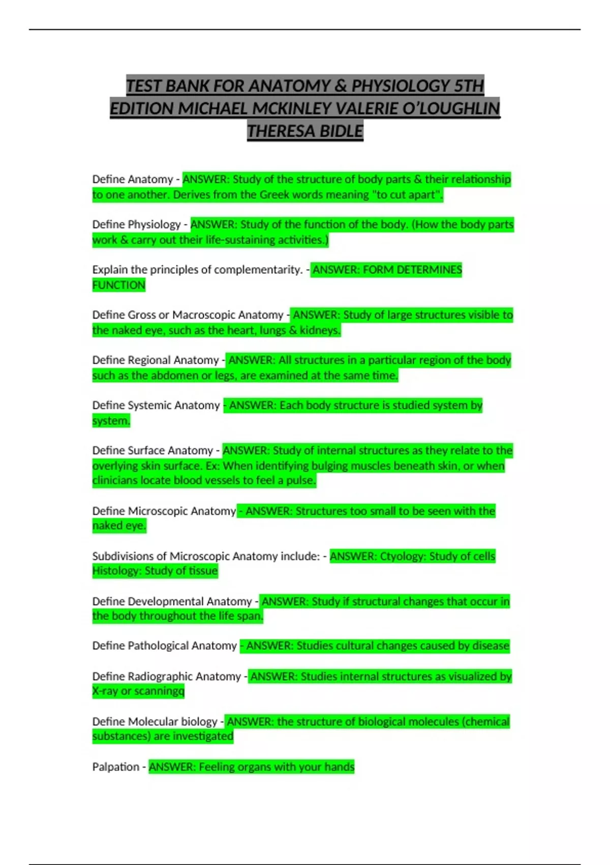 TEST BANK FOR ANATOMY & PHYSIOLOGY 5TH