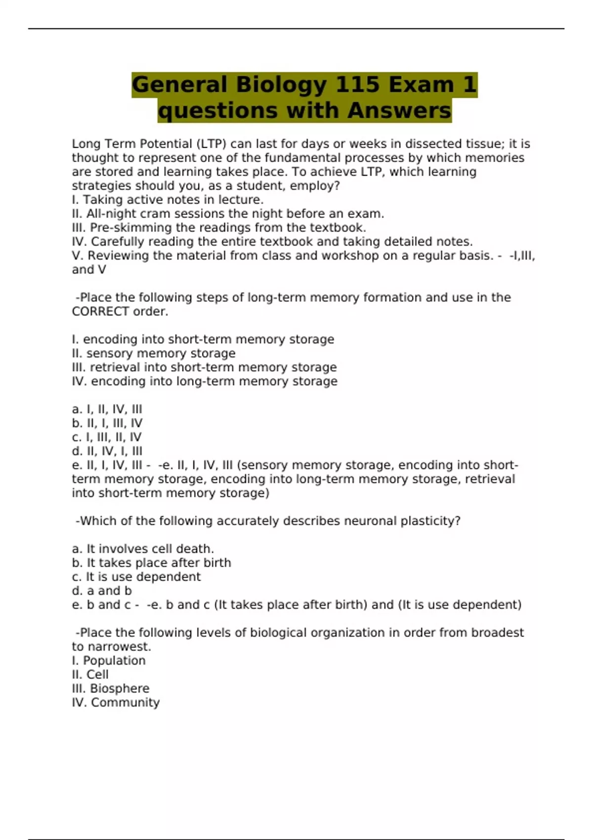 e. III, I, IV, V, II - -d. III, IV, I, V, II (Biosphere, community, Population,