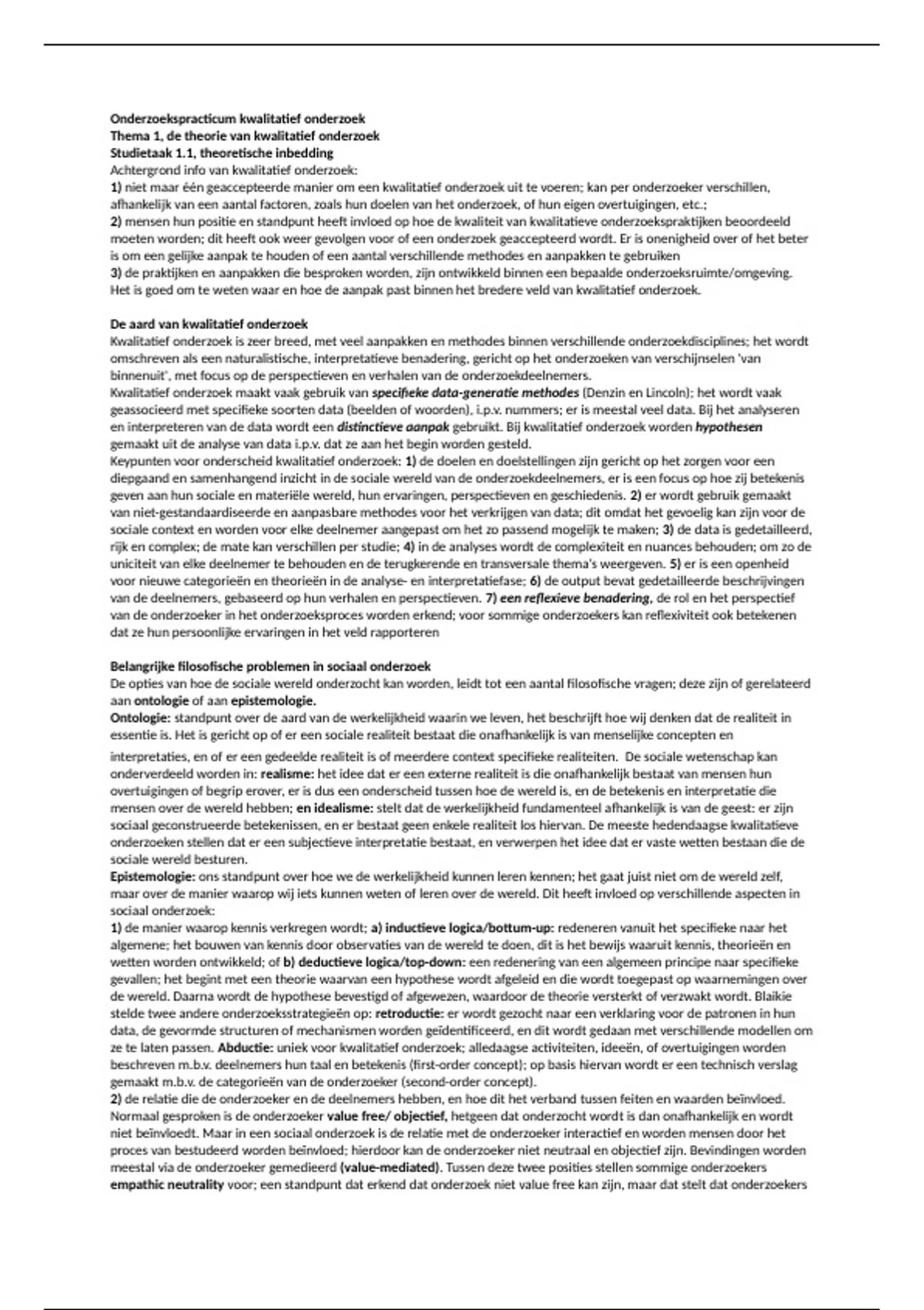 rijk en complex; de mate kan verschillen per studie; 4) in de analyses wordt de complexiteit en nuances behouden; om zo de