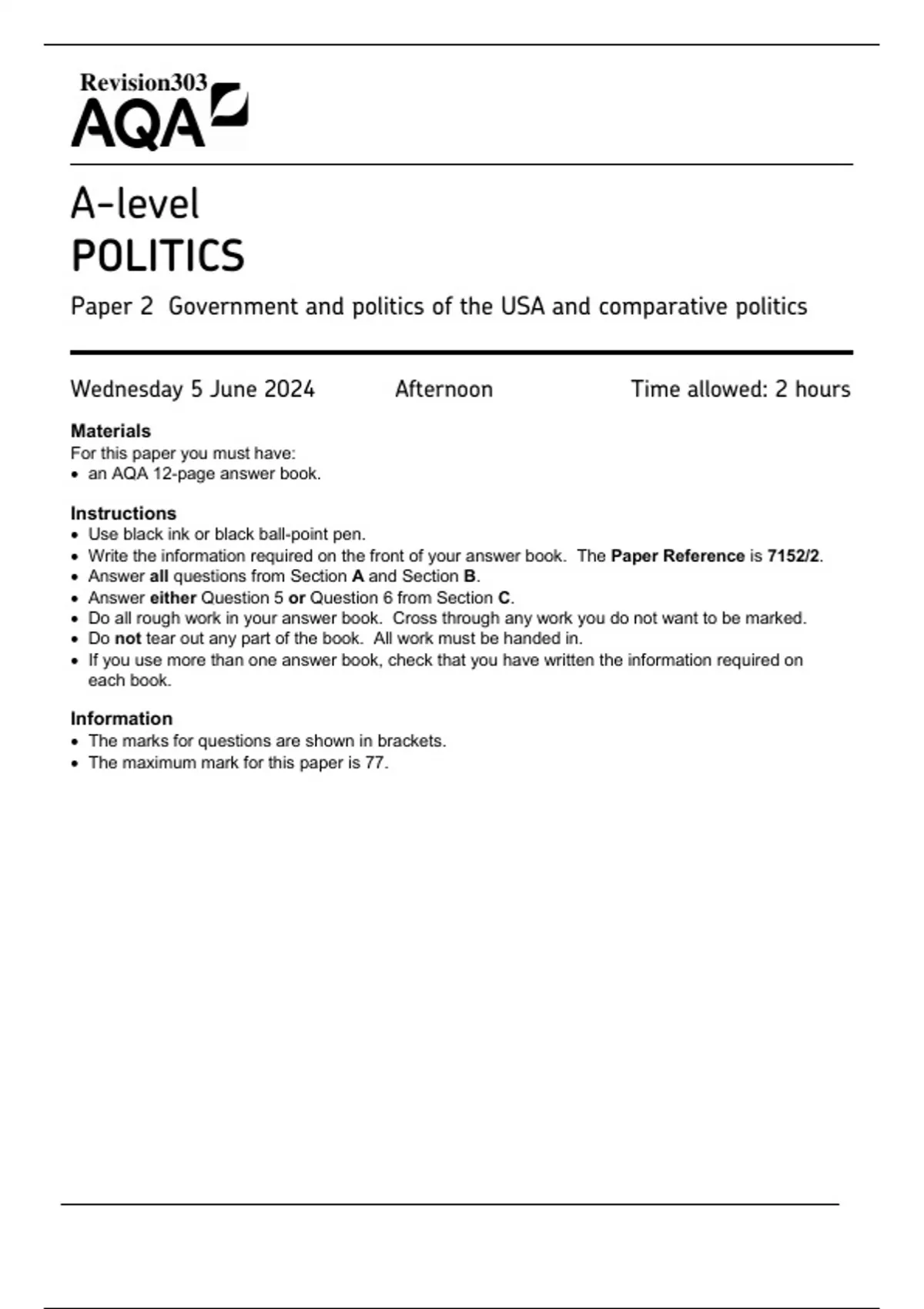 • The maximum mark for this paper is 77.