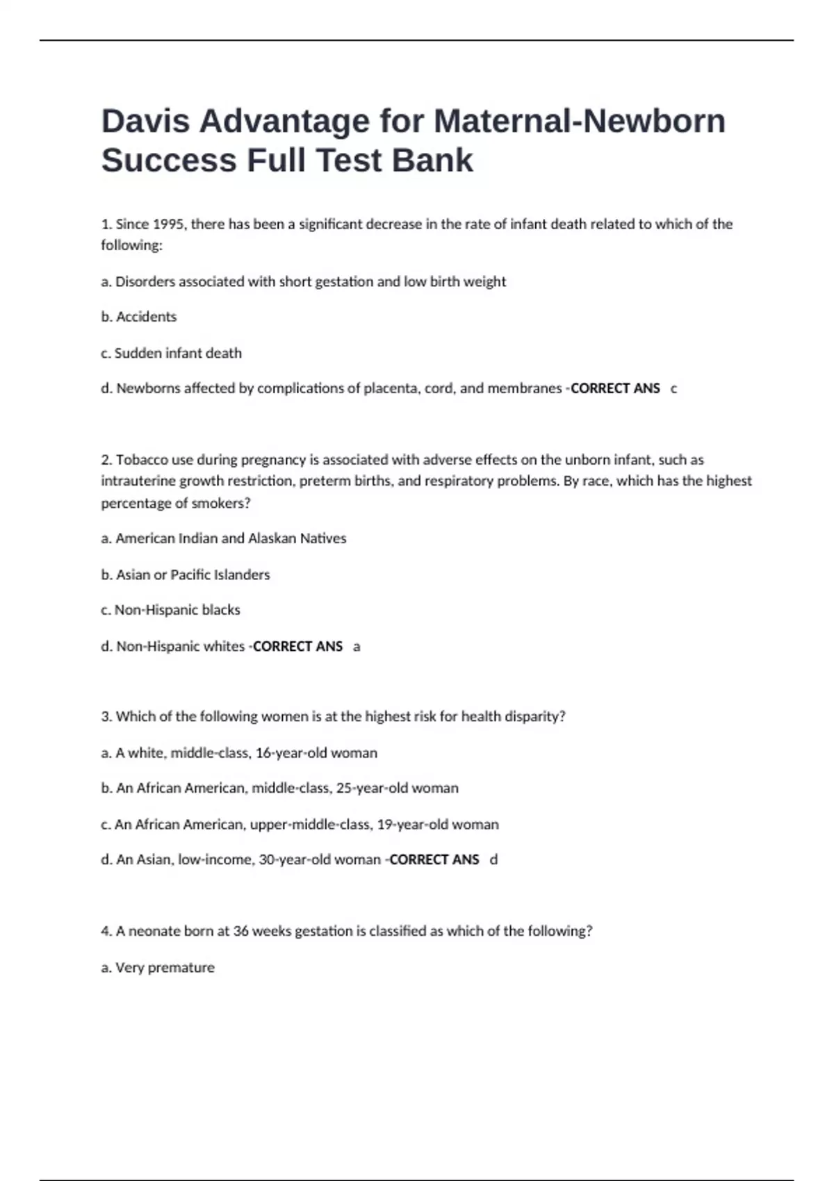 Davis Advantage for Maternal-Newborn Success Full Test Bank Davis Advantage for Maternal-Newborn Success Full Test Bank Davis Advantage for Maternal-Newborn Success Full Test Bank