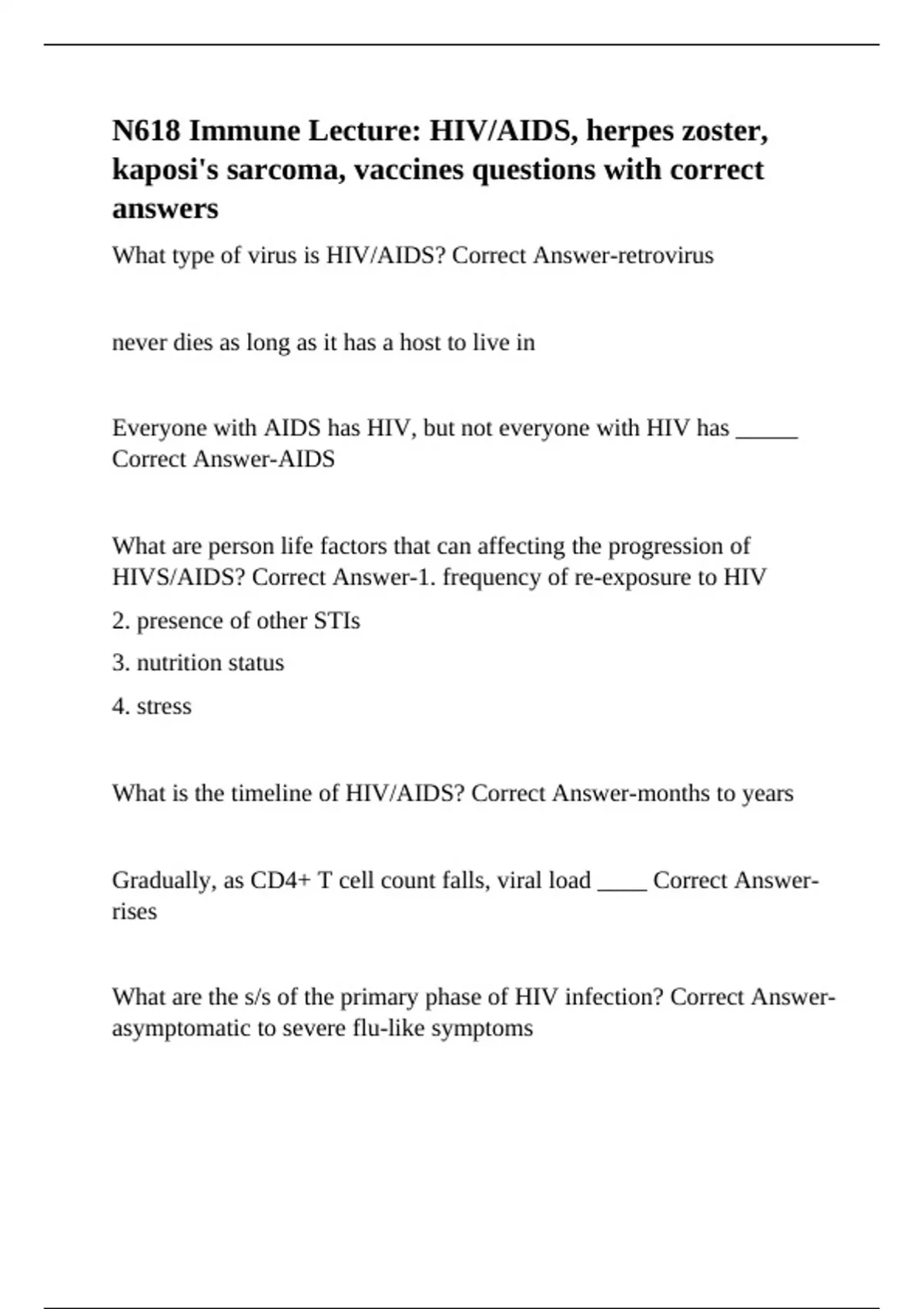 What is the timeline of HIV/AIDS? Correct Answer-months to years